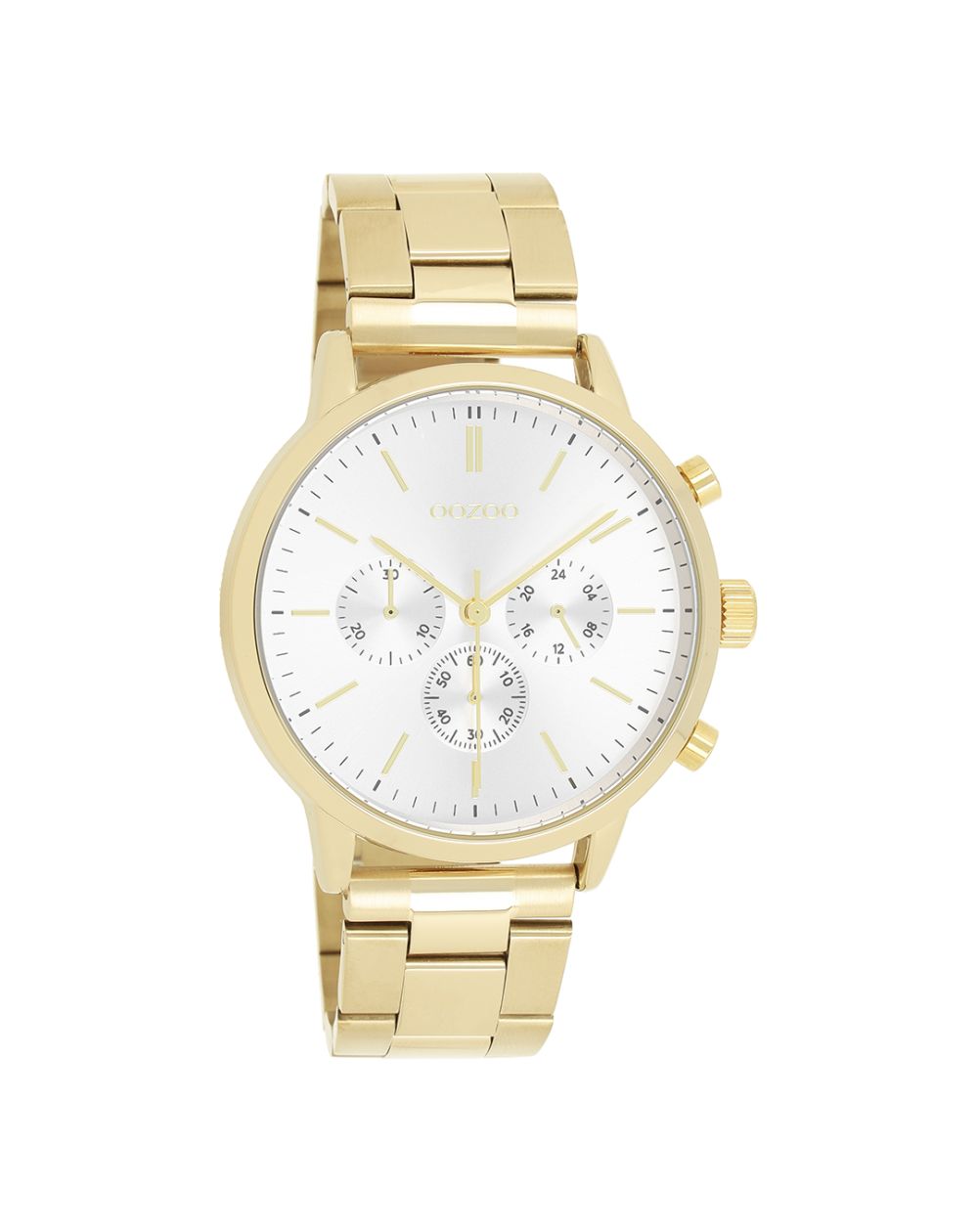 Make a statement with the OOZOO C11407 gold watch , a masculine model from the trendy OOZOO Timepieces collection. Its matte/shiny gold stainless steel bracelet and 42 mm gold metal case are paired with a silver sunray dial and chronograph. The gold-tone striped indexes and matching hands add a touch of refinement. With a 2ATM Japanese movement and a 2-year warranty, this watch is a must-have.