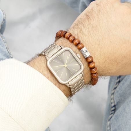 Its taupe stainless steel bracelet provides comfort and originality, making this watch a unique accessory, suitable for both men and women.
