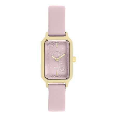 Delicate and luminous, this women's watch captivates with its rectangular gold case and its soft and refined powder pink leather strap .