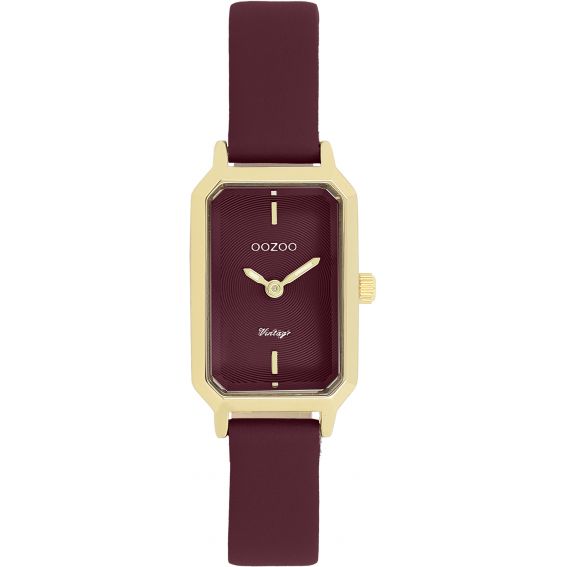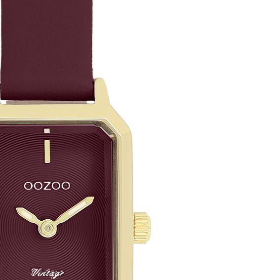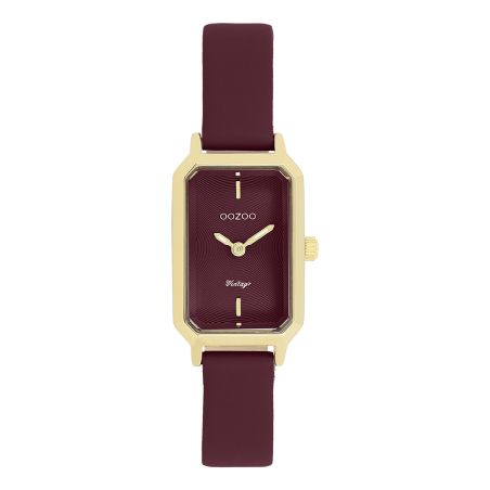 Intense and refined, this women's watch is distinguished by its deep burgundy leather strap , combined with a rectangular gold case with elegant lines.