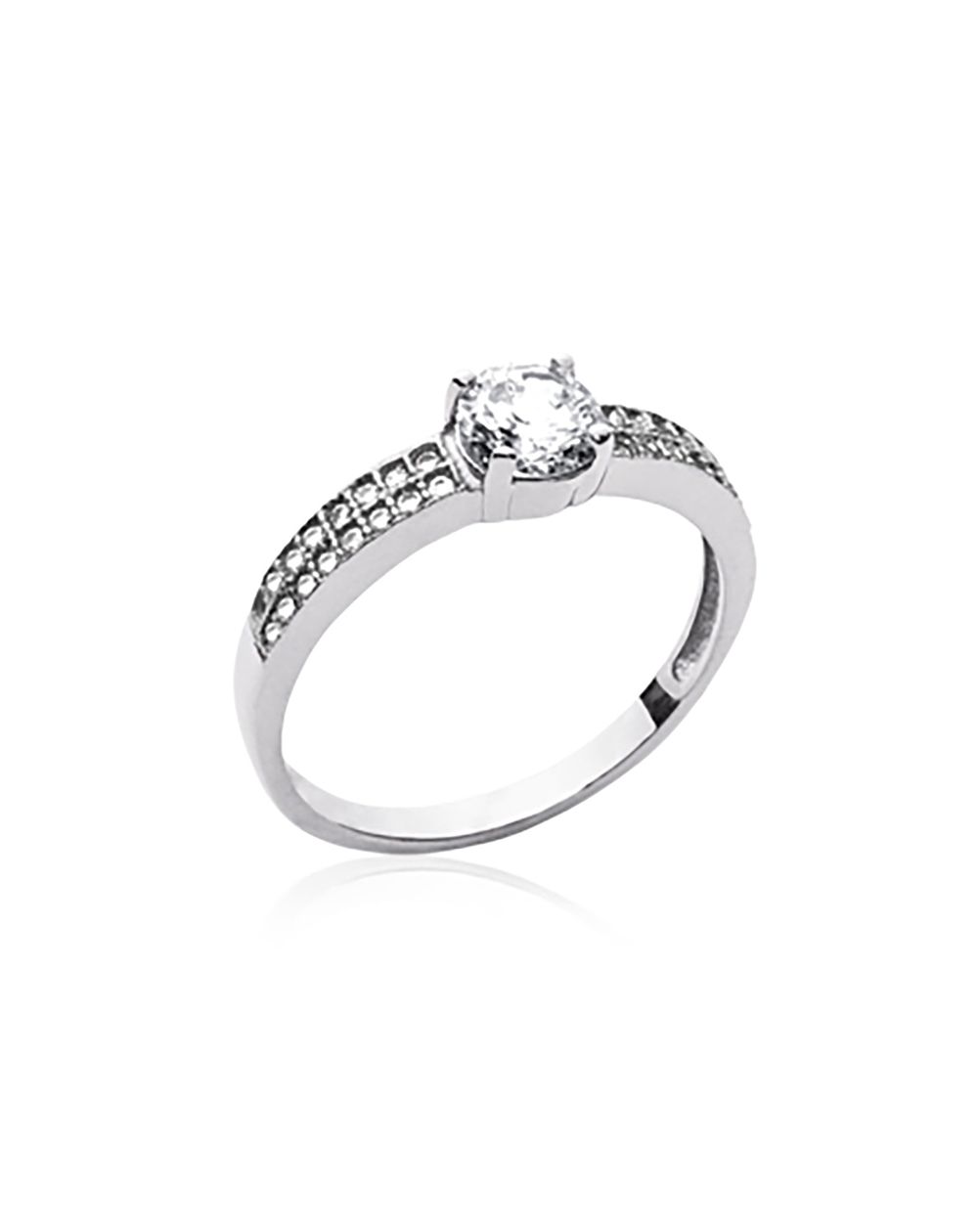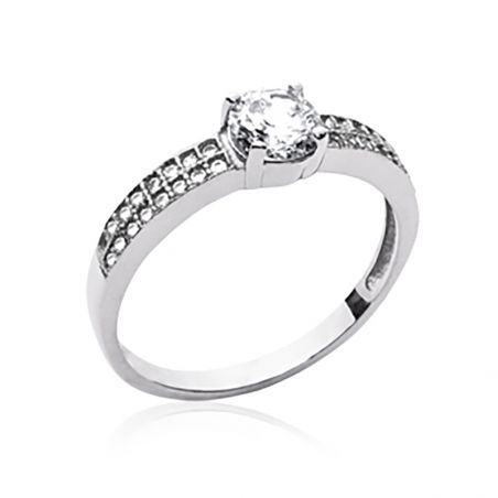 Solitary ring 5mm double rail silver 925 rhodium zirconium