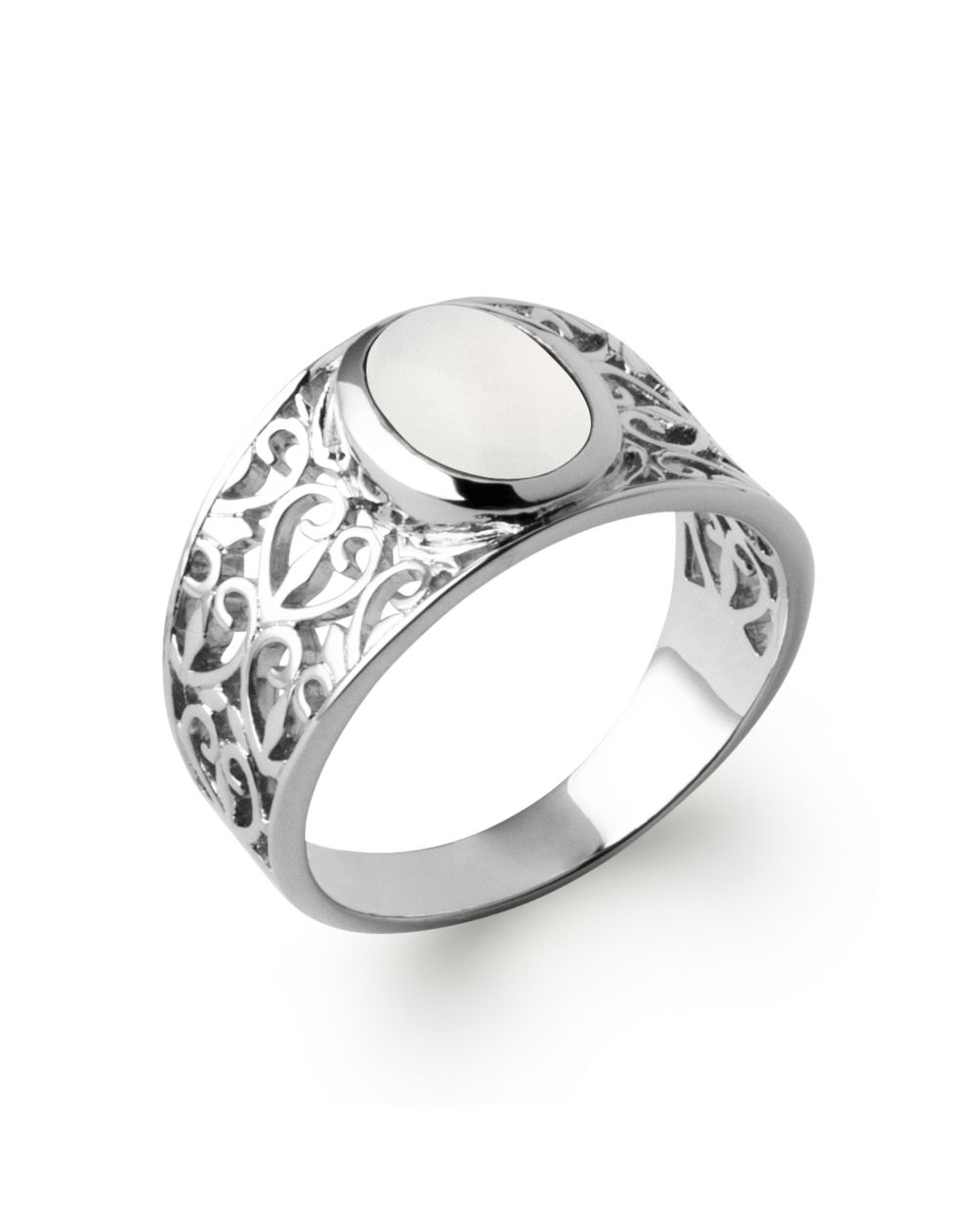 This moonstone ring is a rhodium-plated 925 silver ring from which you can choose your size. The moonstone ring has an oval-shaped stone in the center of the ring.
