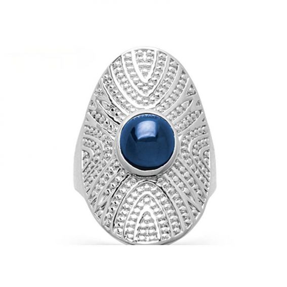 Oval Blue Silver Stone Ring 925 rhodium PS