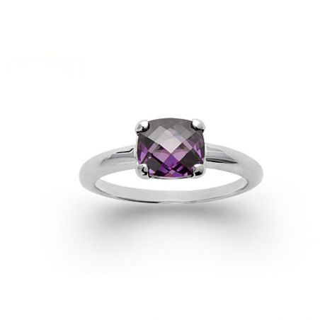 Mauve silver rectangular stone ring 925 rhodium zirconium