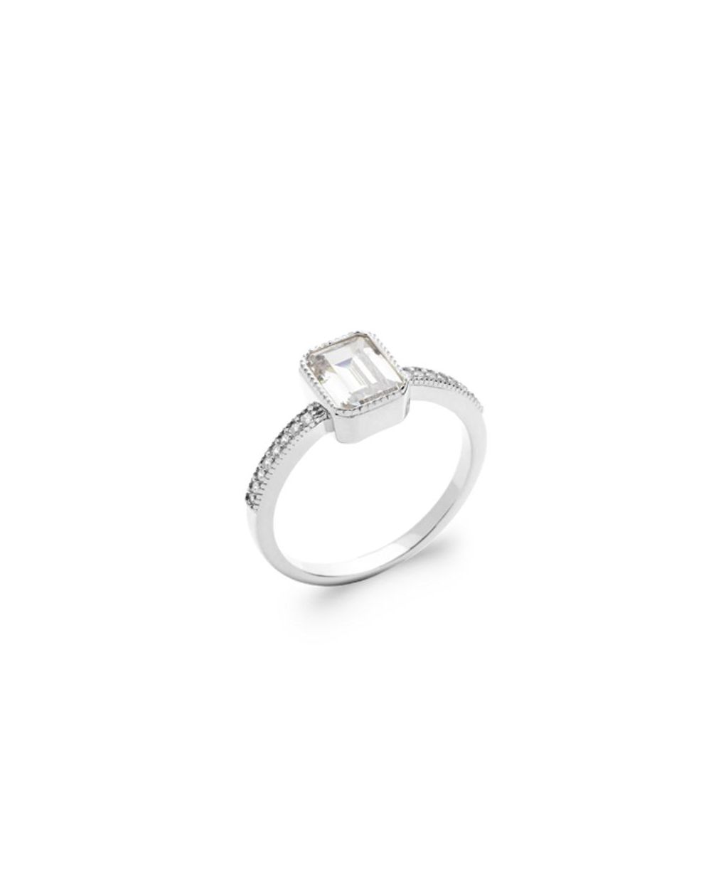Rectangle ring with 925 rhodium Zirconium silver stones