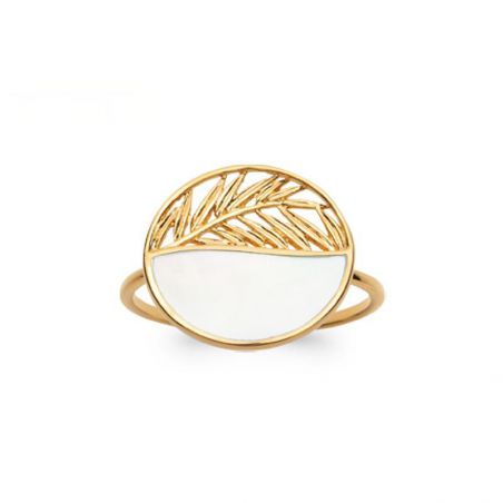 Leaf and pecked gold ring 18k mother -of -pearl