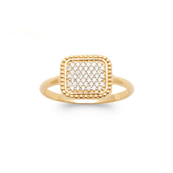 Square pavement ring gold plated 18K Zirconium