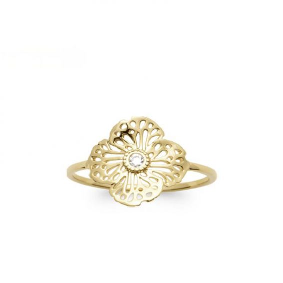 Flower ring with gold plated 18k zirconium