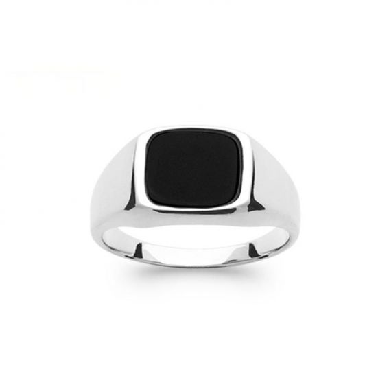 This signet ring is in rhodium-plated 925/1000 silver. The central stone is an onyx stone.