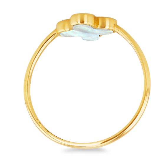 Bijoux or et personnalisé 9 carat yellow gold pearl petal clover ring