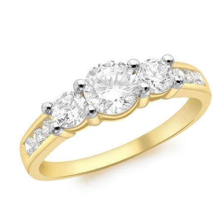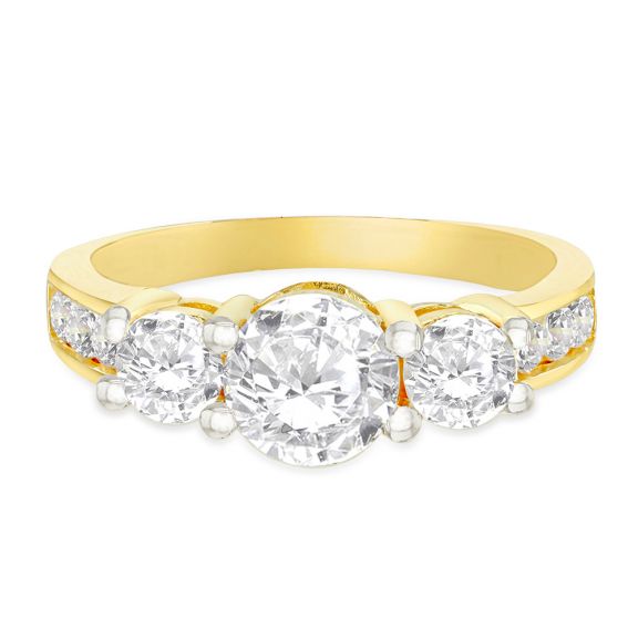 Cheap yellow gold solitaire ring with 3 stones