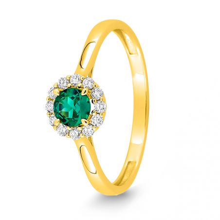 Round emerald and diamond gold ring