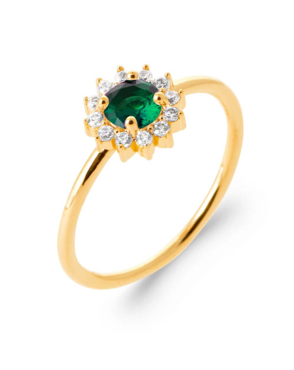 Bijou argent/plaqué or Ring with emerald-colored sun stone, gold plated