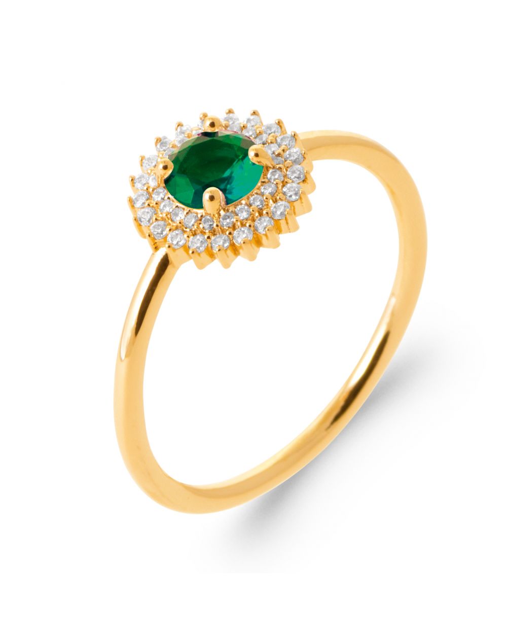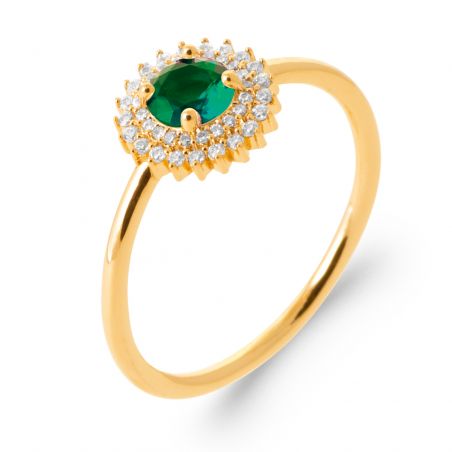 Bijou argent/plaqué or Gold plated double sun emerald stone ring