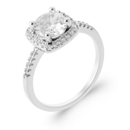 Rhodium-plated silver solitaire engagement ring