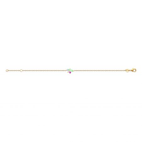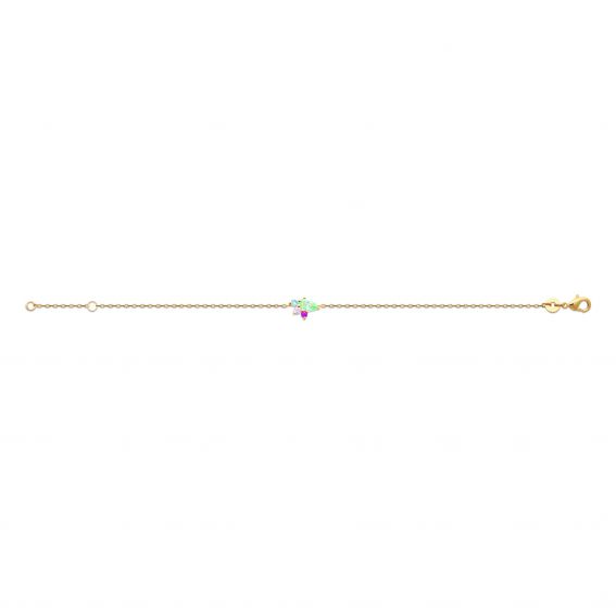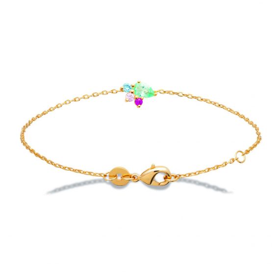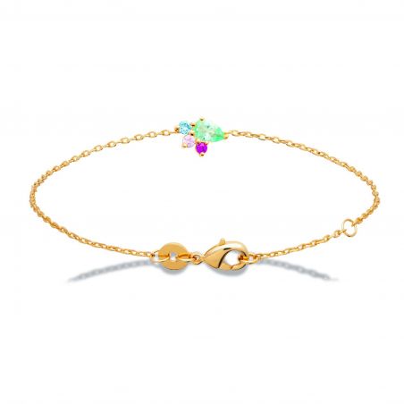 This bracelet is an 18k gold plated bracelet with cubic zirconia stones. This bracelet is 18cm long and can be adjusted in length.