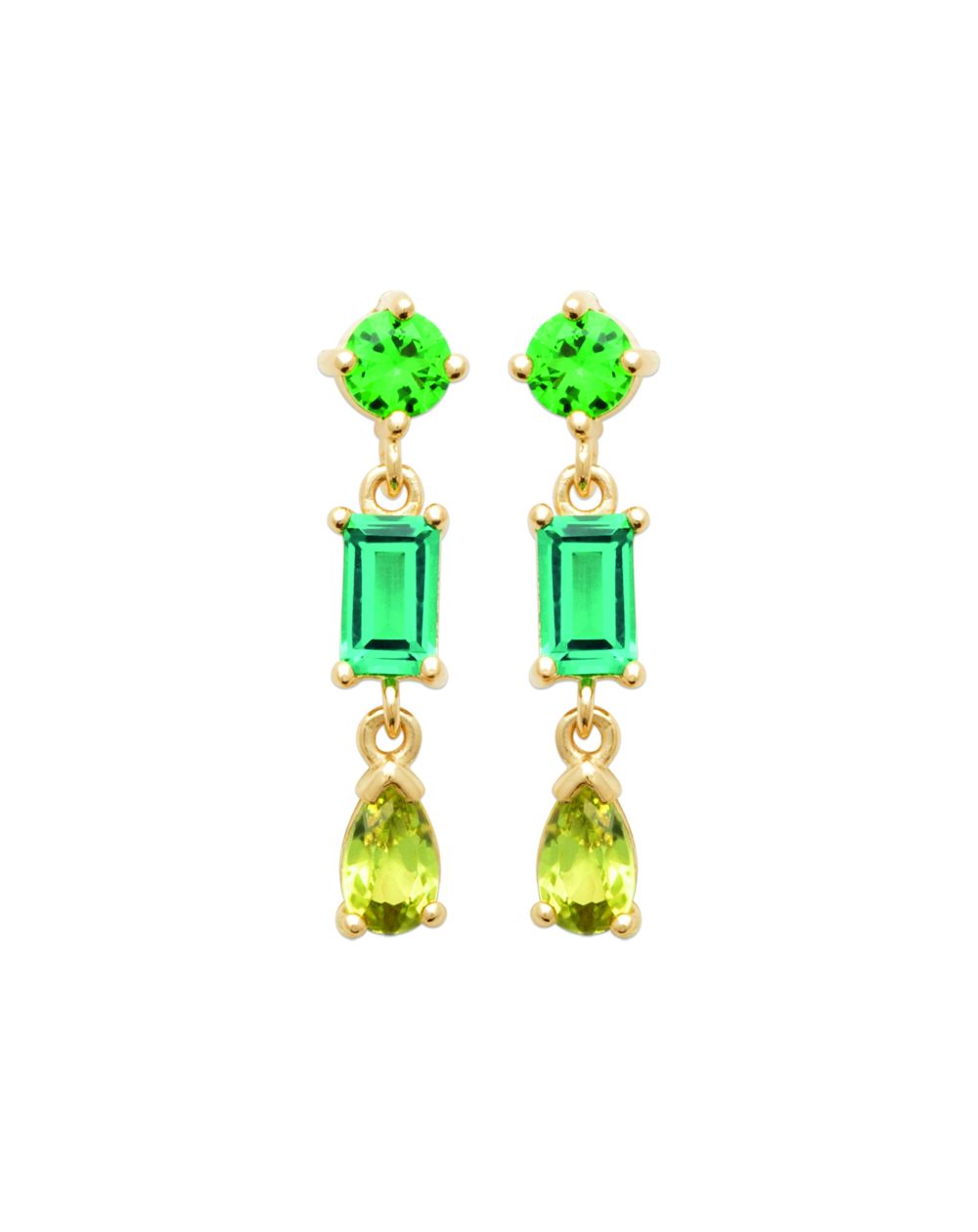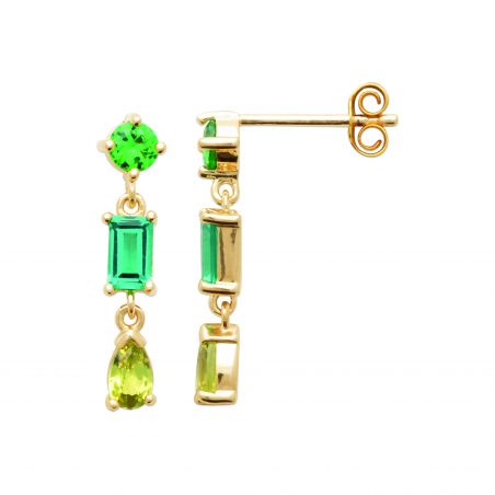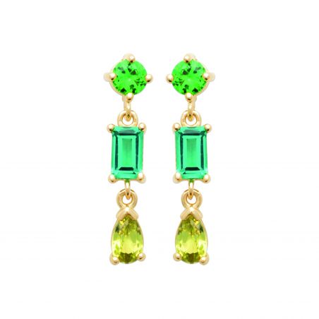 Pendant drills made of zirconium oxides in shades of green and different shapes.