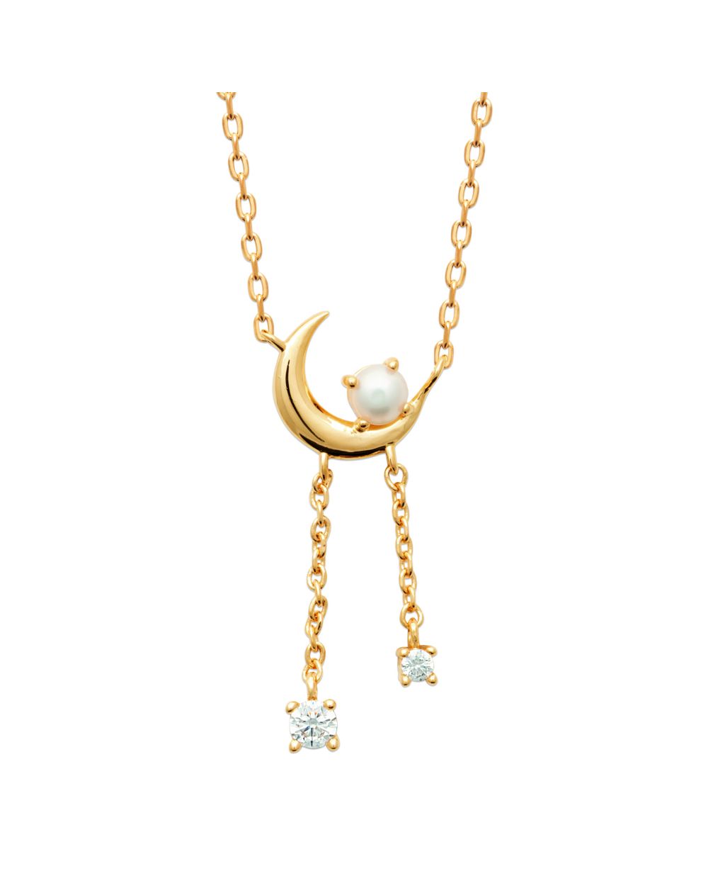 Poetic and delicate, the Aria necklace is inspired by the mysterious beauty of the moon. Its crescent moon pendant holds a luminous pearl at its center, evoking the soft glow of starry nights.