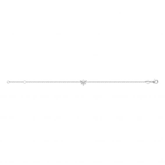 The Iséline bracelet embodies finesse and delicacy with its central motif in a cluster of sparkling stones .