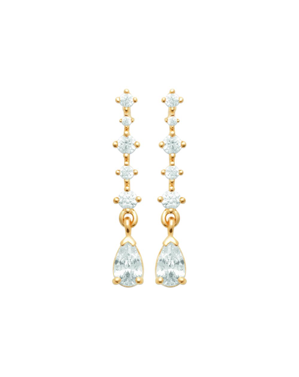 Elevate your look with the Alya Elegance earrings in gold plating , a refined creation with a sleek and luminous design. Composed of a delicate line of sparkling cubic zirconia extending into a teardrop-shaped stone, they add a touch of glamour and sophistication to your style.