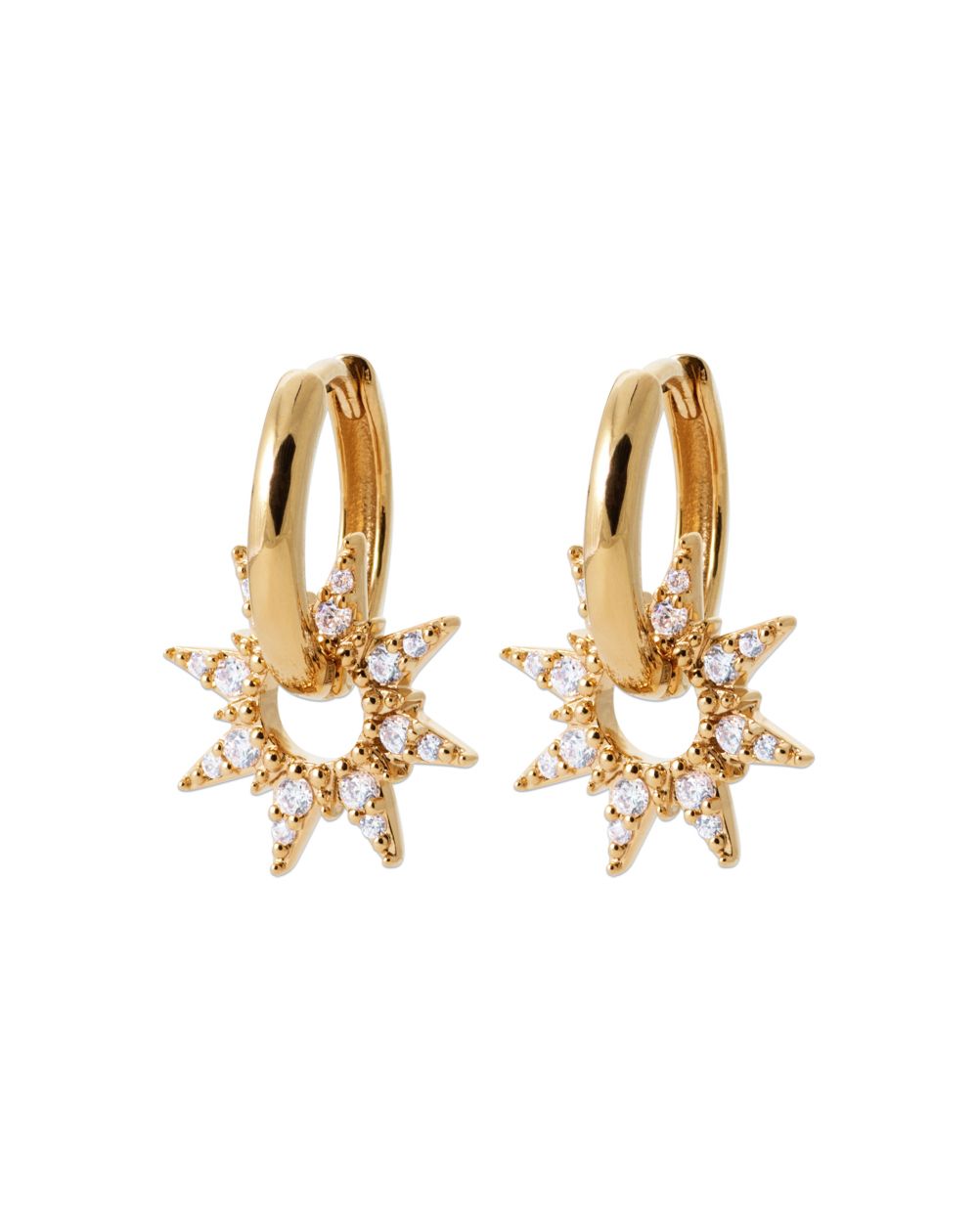 Make your style shine with the Astrae earrings , a luminous creation inspired by the stars. Crafted in 18-karat gold plating , they combine a smooth and elegant hoop with a star-shaped pendant set with sparkling cubic zirconia stones , for a dazzling and refined effect.