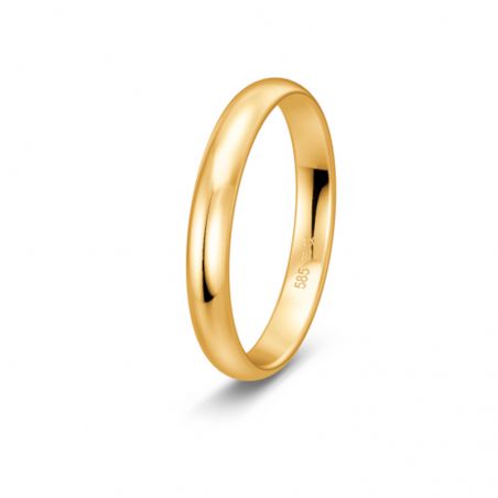 This 18carat yellow gold alliance is a half-jacket alliance curved outside and flat inside. This is 3mm wide and perhaps personalized with an engraving (date and first names).