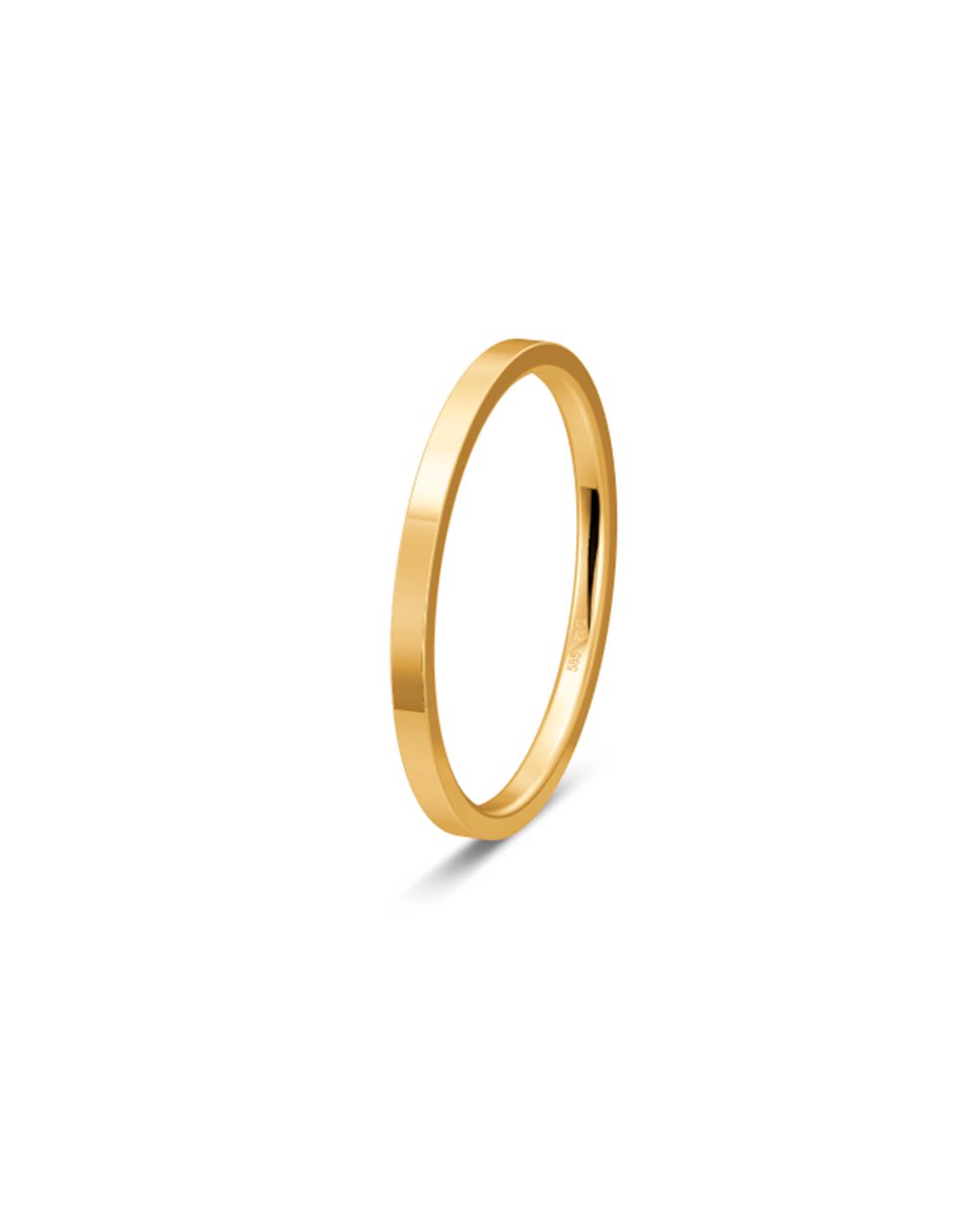 Cette alliance en or jaune 18 carats est une alliance ruban de surface plate. Cette alliance mesure 1,5mm de large et peut-être personnalisée d'une gravure (date et prénoms).