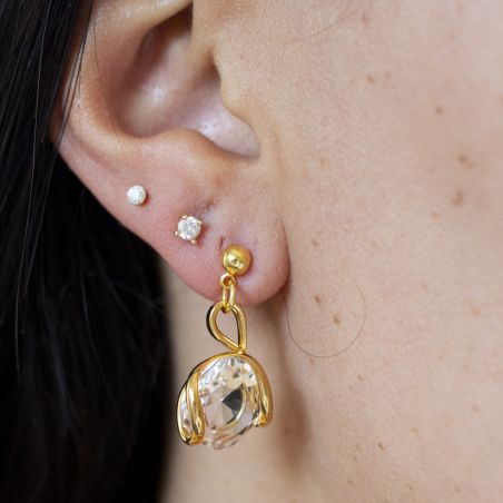 Ces boucles d'oreilles sont ornées d'une pierre Swarovski qui ajoute une touche d'éclat et de sophistication à l'ensemble. Mesurant 27mm de haut et avec une pierre de 13mm de côté, elles sont à la fois discrètes et remarquables.