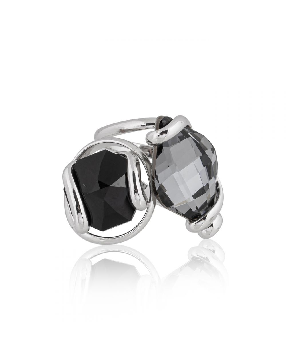 La bague est ornée de cristaux Swarovski, symboles d'élégance et de sophistication. Leur couleur noir intense apporte une touche de mystère et de glamour à cette bague.
