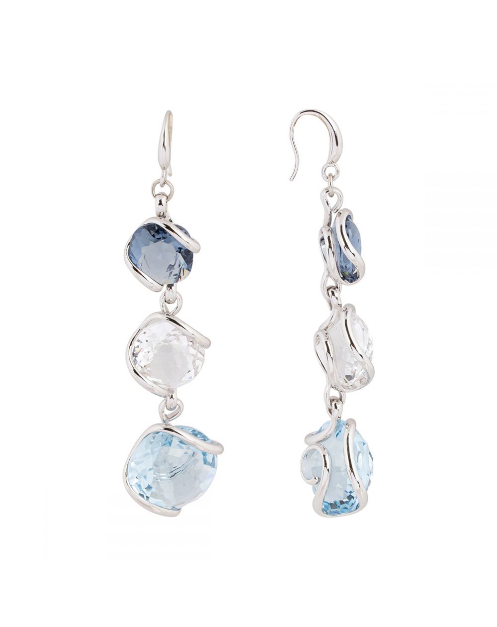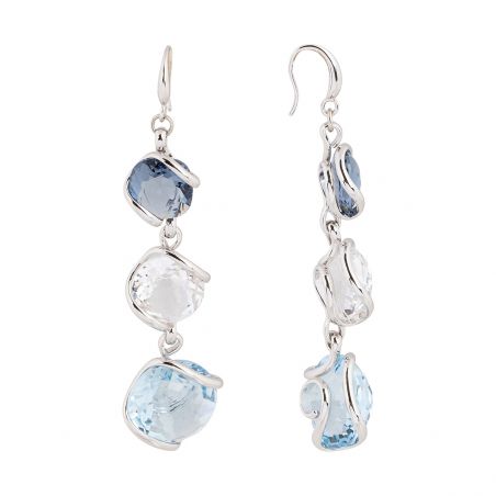 Boucles d'oreilles Cristal Swarovski Big Bubble Aquamarine Triple