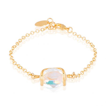 La pierre est un cristal Swarovski ovale mesurant 18mm de long sur 13mm de côté. Ce bracelet est facilement réglable et s'adapte à la taille de votre poignet.