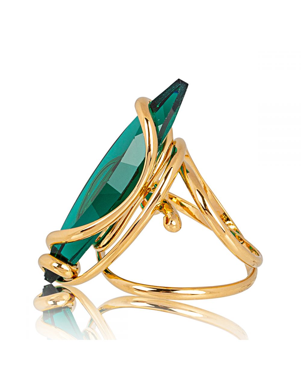 La pierre est un cristal Swarovski mesurant 35mm de long. Cette bague est facilement réglable et s'adapte à la taille de votre doigt.