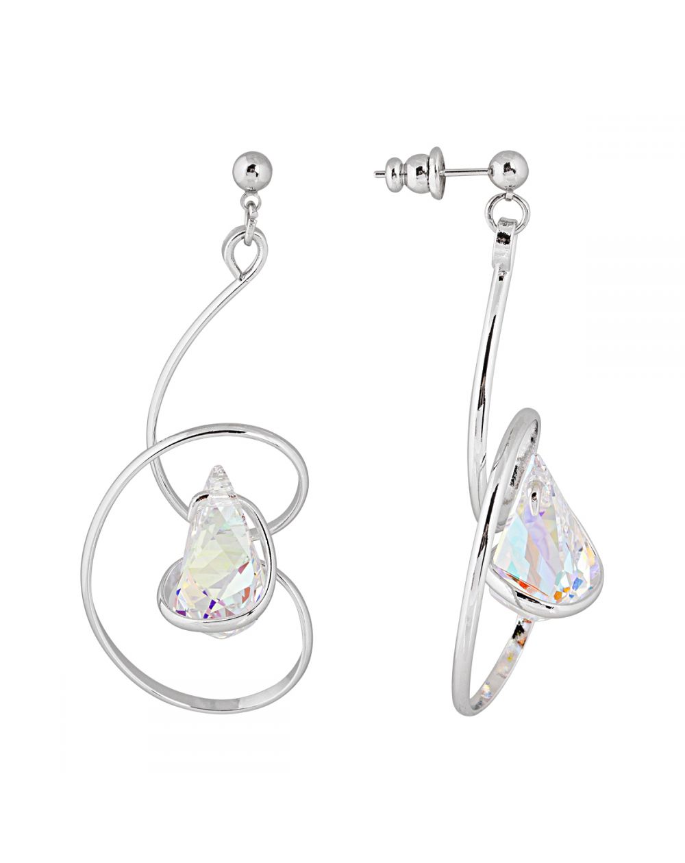 Le cristal central : Un cristal Swarovski en forme de goutte, à effet AB (Aurora Borealis), capte magnifiquement la lumière pour créer des reflets multicolores, iridescents. Ce cristal facetté est suspendu au centre de la boucle, ajoutant un élément visuel captivant qui change de couleur selon l'angle sous lequel on le regarde.