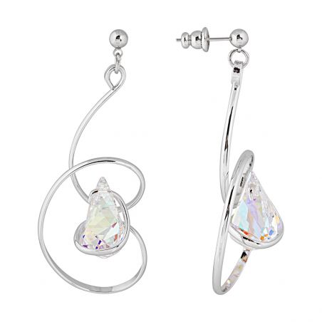 La monture en spirale argentée : Le cristal est serti dans une monture en métal argenté, formant une spirale élégante qui entoure délicatement le cristal. Ce design crée une impression de mouvement et de fluidité, renforçant l’aspect sophistiqué de ces boucles d’oreilles.