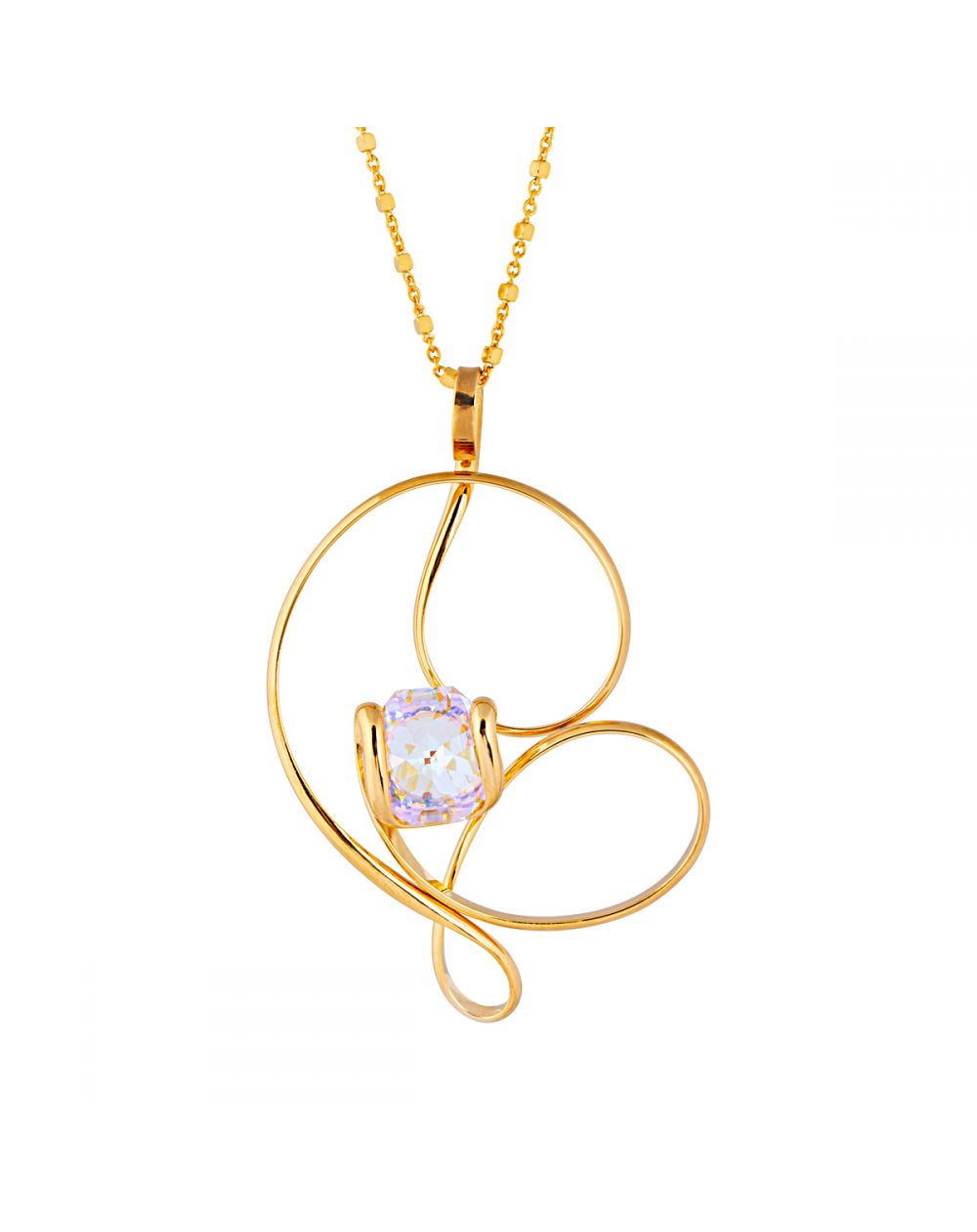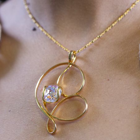 Ce collier Andrea Marazzini Swarovski Gold Octagon AB Daisy se distingue par son design fluide en métal doré et son cristal Swarovski Octagon AB, qui reflète des nuances irisées. Le pendentif présente une structure en forme de boucles élégantes entourant le cristal octogonal, accentuant sa brillance. La chaîne dorée fine complète l’ensemble, apportant une touche d’élégance moderne et lumineuse. C'est un bijou raffiné, idéal pour sublimer une tenue avec éclat et sophistication.
