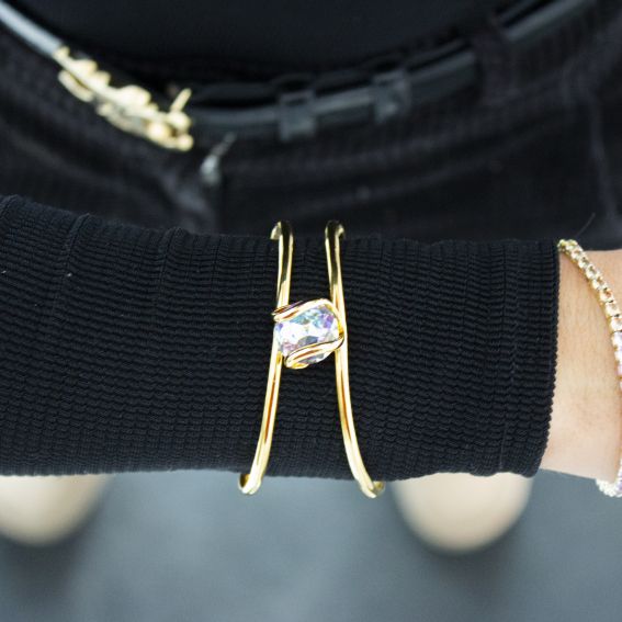 Découvrez le bracelet Andrea Marazzini Cherry Vitral Light, une pièce délicate et élégante ornée d'un cristal Swarovski de 14 mm aux reflets multicolores. Ce bracelet doré au design minimaliste ajoute une touche de lumière et de sophistication à votre look, parfait pour les occasions spéciales ou pour illuminer vos tenues quotidiennes.