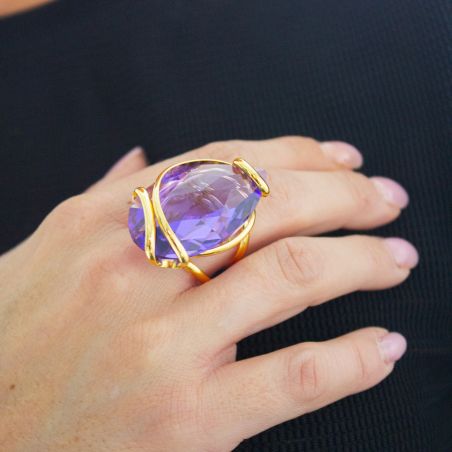 La bague Andrea Marazzini Big Drop Violet est une pièce élégante et imposante, ornée d'un cristal Swarovski violet de 37mm de haut et 22mm de large. Son design audacieux, entouré d'une monture dorée, attire l'attention tout en ajoutant une touche sophistiquée à votre look. Cette bague représente parfaitement le savoir-faire d'Andrea Marazzini, combinant un éclat luxueux avec des lignes fluides et modernes pour un effet spectaculaire.
