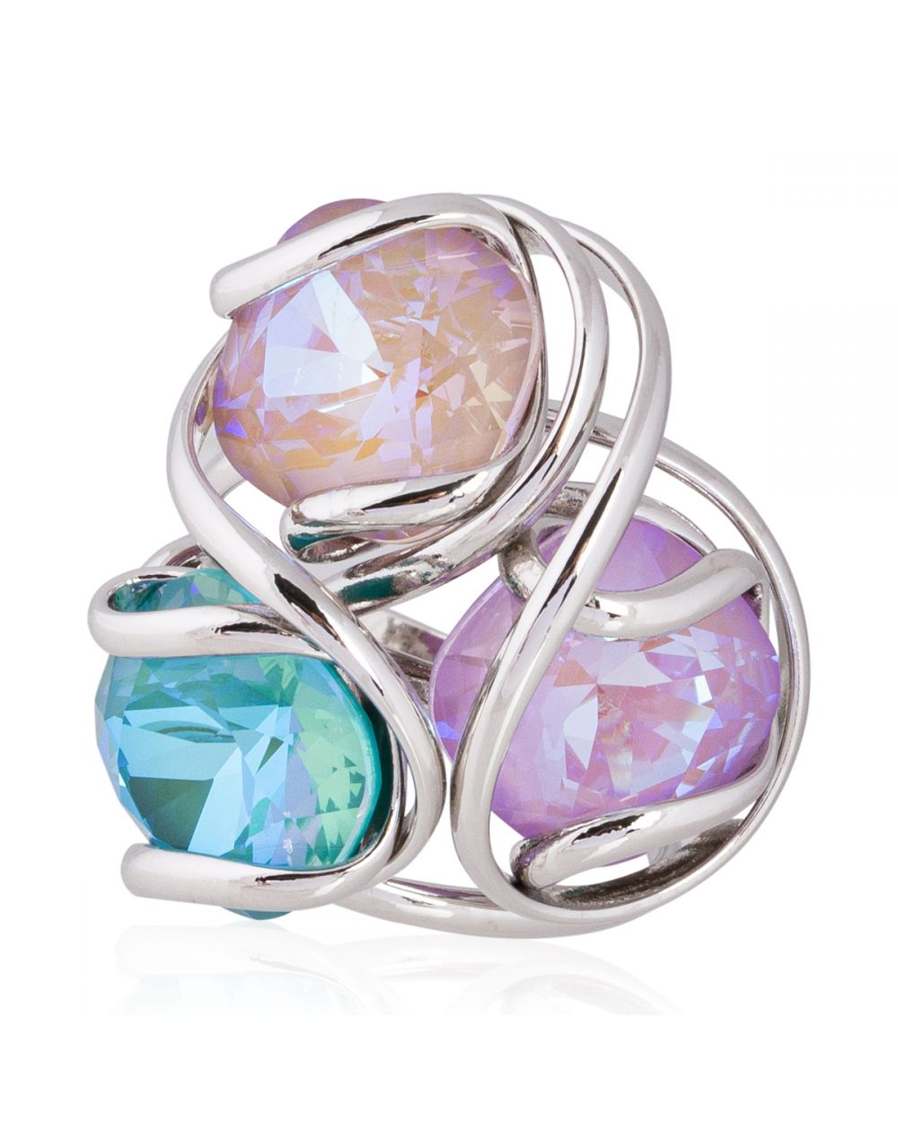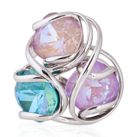La bague Andrea Marazzini Swarovski Mini Laguna Delite Triple est une création spectaculaire et vibrante, ornée de trois superbes cristaux Swarovski aux nuances éclatantes et délicates. Chacun des cristaux présente une couleur unique et envoûtante, mêlant des teintes de bleu lagon, de violet et de rose pêche. Ces cristaux sont soigneusement sertis dans une monture en métal argenté, créant un jeu de courbes et de spirales qui entourent harmonieusement les pierres.