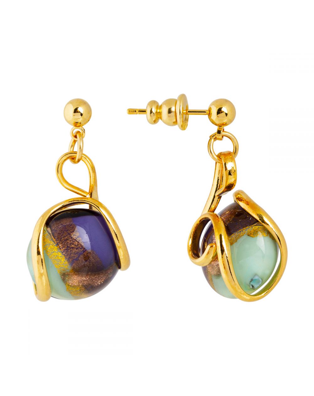 Les boucles d'oreilles Venice F5 dorées d'Andrea Marazzini incarnent l'harmonie entre élégance et créativité. Chaque boucle est ornée d'une pierre unique, présentant une combinaison envoûtante de nuances bleu profond et vert pastel, enrichies par des reflets dorés subtils et scintillants.