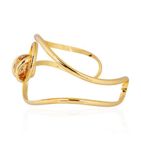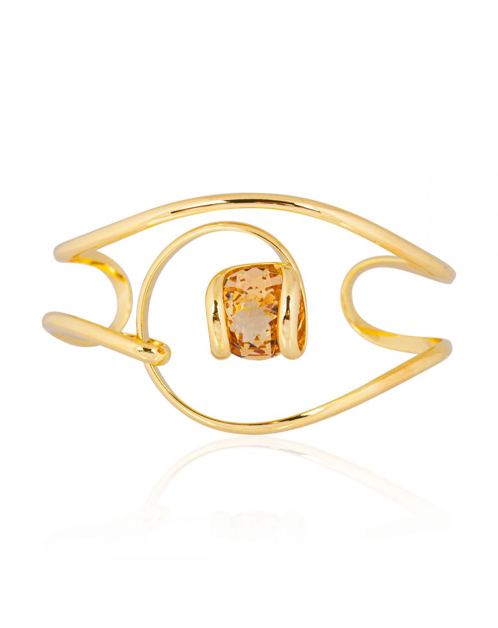 Apportez une touche lumineuse à votre style avec ce bracelet en métal doré au design sculptural. Son cristal Swarovski Golden Shadow, aux reflets dorés subtils, capte la lumière avec élégance. Ajustable et sophistiqué, il est parfait pour une allure chic et moderne.