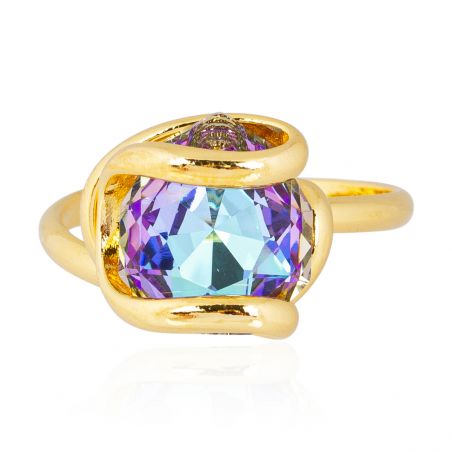 Sublimez votre style avec cette bague en métal doré, ornée d’un somptueux cristal Swarovski Vitral Light de 12 mm. Ses nuances chatoyantes de bleu, violet et or captent la lumière sous tous les angles, créant un effet hypnotique. Son design sculptural et élégant en fait un bijou raffiné, idéal pour illuminer votre quotidien ou parfaire une tenue de soirée.