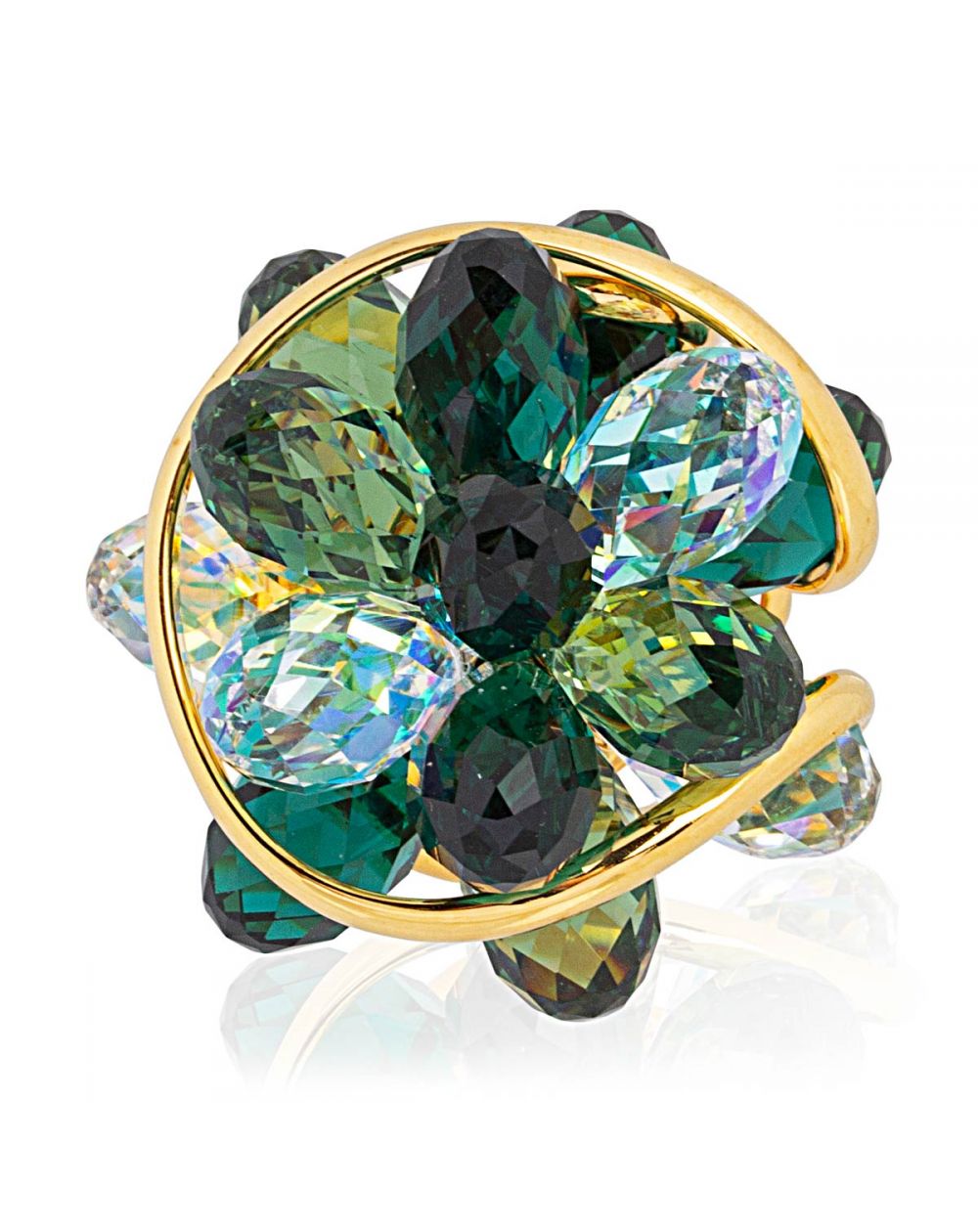Laissez-vous séduire par l’éclat somptueux de cette bague Marazzini, une création unique de la maison Andrea Marazzini. Véritable chef-d'œuvre artisanal, cette bague se distingue par un somptueux bouquet de cristaux Swarovski aux nuances profondes d’émeraude, subtilement facettés pour capturer et refléter la lumière.