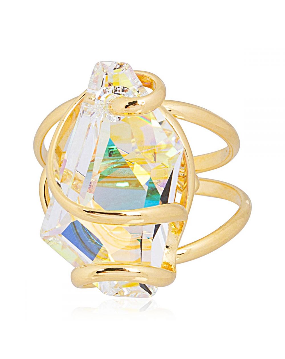 Plongez dans un monde de lumière et de sophistication avec cette bague Marazzini, une création exclusive signée Andrea Marazzini. Son majestueux cristal Swarovski De Art AB, aux reflets irisés captivants, joue avec la lumière pour dévoiler une palette infinie de couleurs, oscillant entre or, bleu et nuances prismatiques.