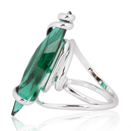Sublimez votre main avec la bague Marazzini, une création audacieuse d’Andrea Marazzini. Son imposant cristal Swarovski Emerald de 35 mm, taillé en forme de navette, capte la lumière avec intensité et révèle des reflets profonds et fascinants.