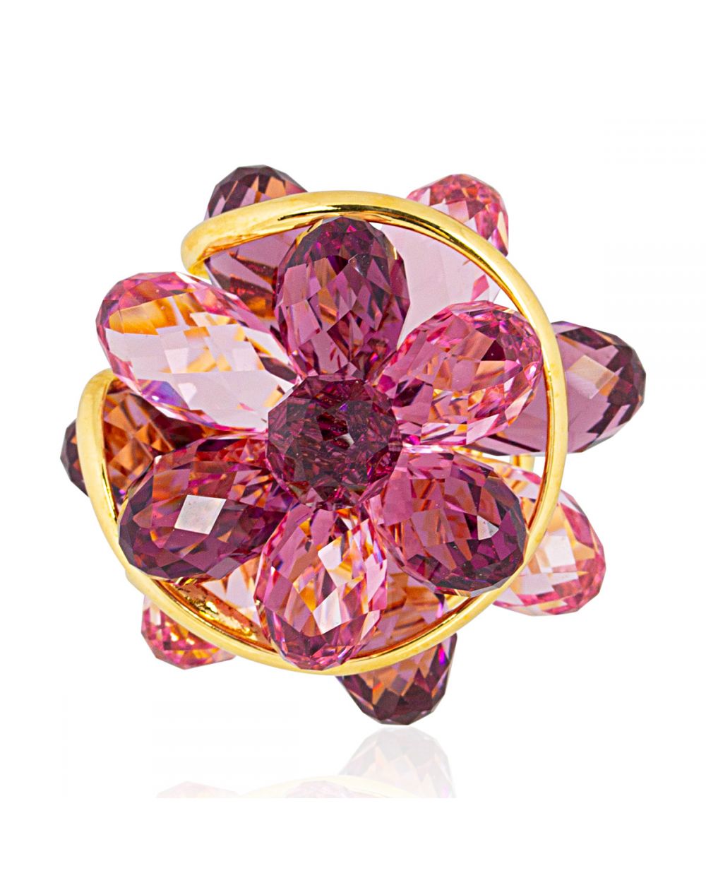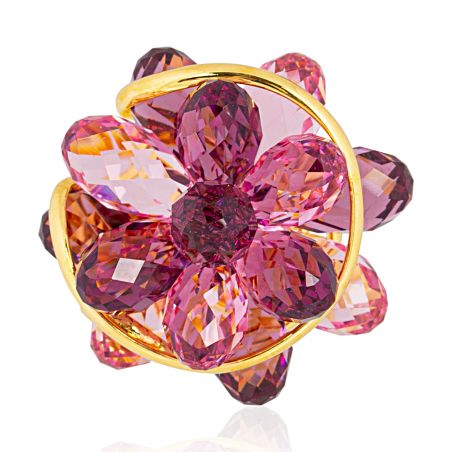La bague Andrea Marazzini est une pièce d'exception qui allie raffinement et créativité. Fabriquée en laiton doré à l’or fin, elle est ornée d’un somptueux bouquet de cristaux Swarovski, taillés avec précision pour capturer la lumière et révéler des nuances éclatantes de rose et de violet.