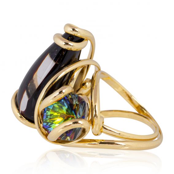 La Bague Andrea Marazzini Venice Deluxe Vitral Medium Double est une pièce audacieuse et raffinée. Elle combine un cristal vitral aux magnifiques nuances iridescentes et un design unique où deux cristaux sont parfaitement entourés de courbes dorées.