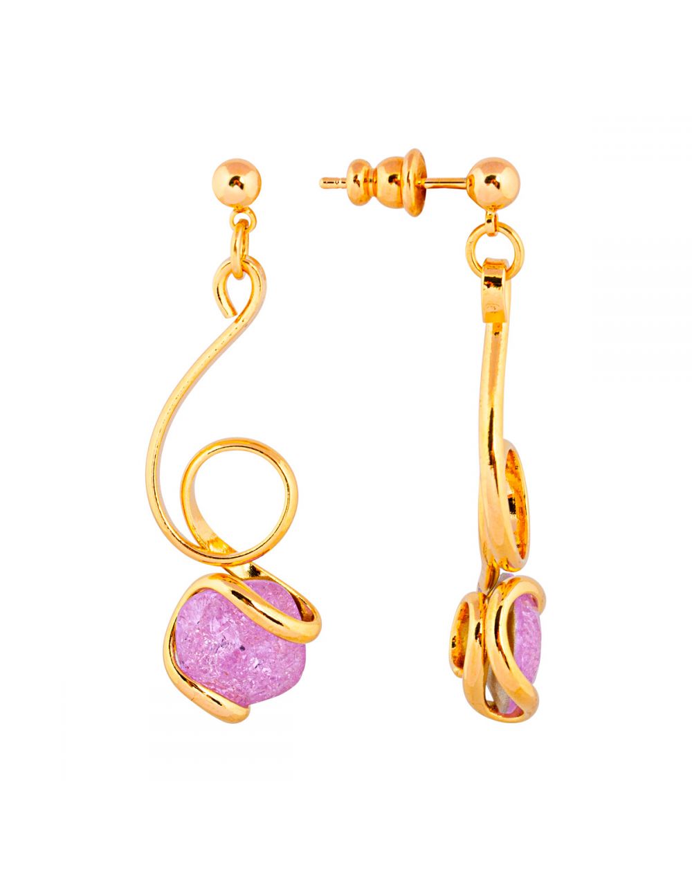 Élégance et originalité se rencontrent dans les boucles d’oreilles ICE Lilla OSE signées Andrea Marazzini. Leur silhouette aérienne est formée d’un fil doré à l’or fin qui ondule avec grâce autour d’un cristal rose/lavande à l’effet givré.