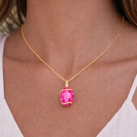 Ce collier Andrea Marazzini Big Ovale ciclamin séduit par son design audacieux et son éclat exceptionnel. Il met en lumière un cristal Swarovski ovale de grande taille, à la teinte ciclamin intense, soigneusement monté dans une structure élégante qui sublime la pierre et capte la lumière à chaque mouvement.