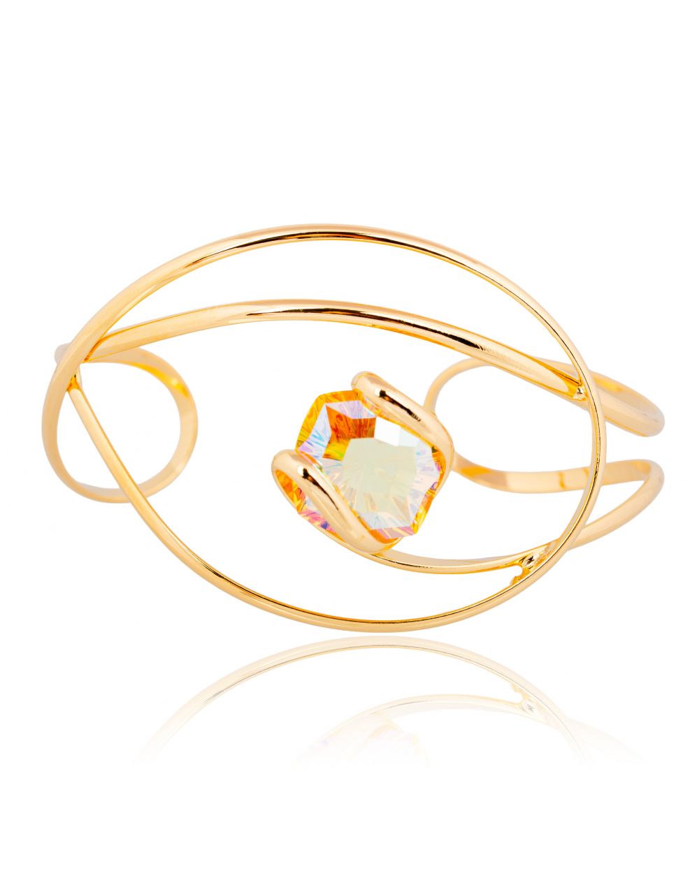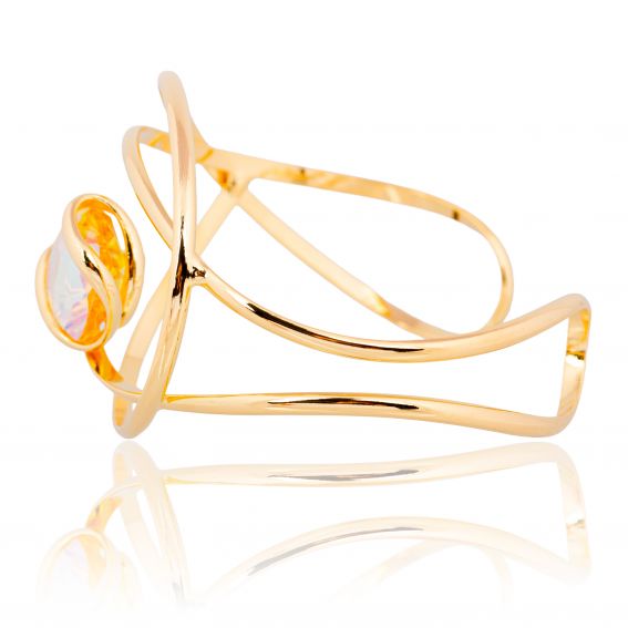 Le cristal central de 17 mm est délicatement serti dans une structure dorée aux lignes fluides et aériennes, signature du style Andrea Marazzini. Le bracelet ouvert épouse naturellement le poignet et garantit un confort optimal, tout en affirmant une présence visuelle forte et sophistiquée.