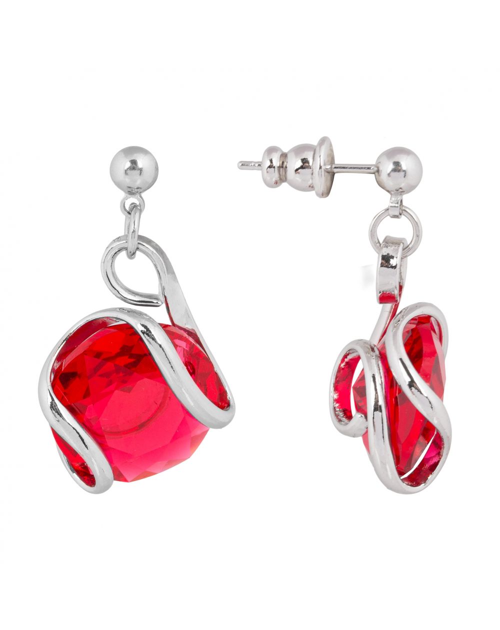 Boucles d’oreilles argentées courtes cristal rouge – Andrea Marazzini Cherry Red
